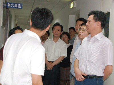 | 2007年9月7日上午,上海市劳动和社会保障局蒋卓庆局长、黄浦区方日东副区长等一行数十人来我校就职业培训的办学情况进行调研。市、区两级领导参观了自力教育淮海东路校区的办学环境,并了解了自力教育在外贸、室内设计等职业课程中的办学特点,并和校方领导就职业培训的发展趋势进行了交流。 |